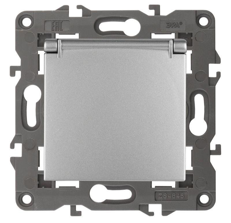 Розетка 1-м СП Эра Elegance 14-2103-03 16А IP20 16AX 250В 2P+E Schuko защ. шторки с крышкой алюм. Эра Б0034280 Эра