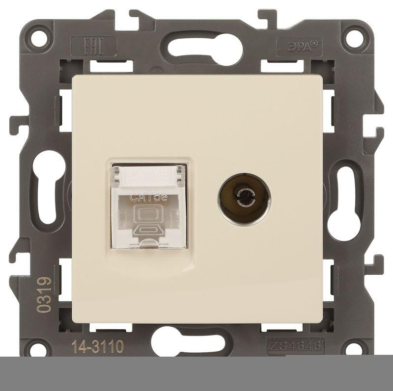Розетка компьютерная + телевизионная 2-м Elegance 14-3110-02 RJ45 + TV IP20 механизм сл. кость Эра Б0034315 Эра