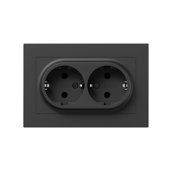 Розетка 2-м СП Эпика 16А с заземл. без защ. шторок с рамкой механизм черн. EKF UP1-SOB-210 EKF