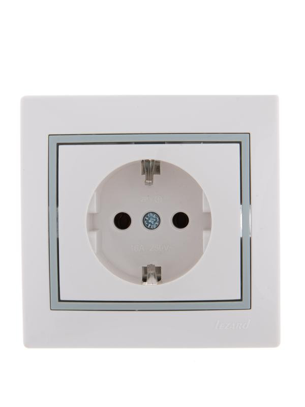 Розетка 1-м СП Mira 16А IP20 с заземл. с сер. вставкой керамика бел. LEZARD 701-0215-122 LEZARD
