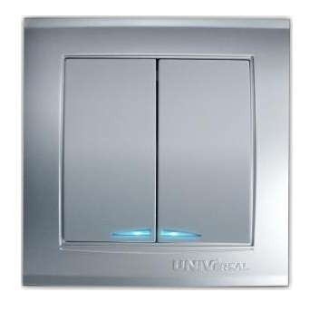 Выключатель 2-кл. СП Бриллиант 10А IP20 с подсветкой серебр. UNIVersal 7949667 Universal
