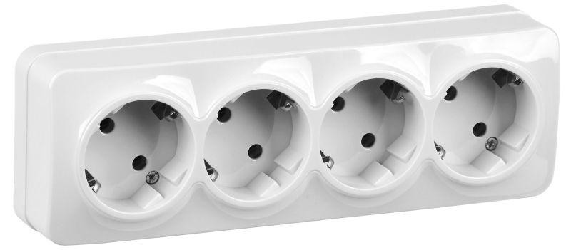 Розетка 4-м ОП GLORY РС24-3-ХБ 16А с заземл. бел. IEK ERH41-K01-16 IEK