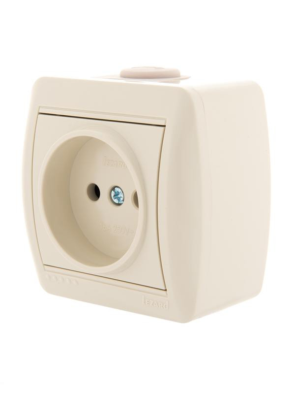 Розетка 1-м ОП Nata 16А IP20 без заземл. керамика крем. LEZARD 710-0300-121 LEZARD