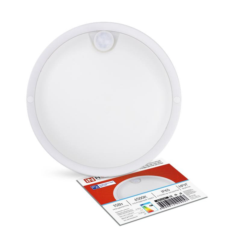 Светильник светодиодный СПП ИД-1565-КРУГ 15Вт 6500К IP65 1350лм 140мм герметичный с инфракрасным датчиком IN HOME 4690612044057 IN HOME