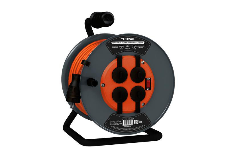 Удлинитель на метал. катушке 4х30м с заземл.16А IP44 ПВС 3х2.5 с выкл. медь TOKOV ELECTRIC TKP-SK30-325-Z