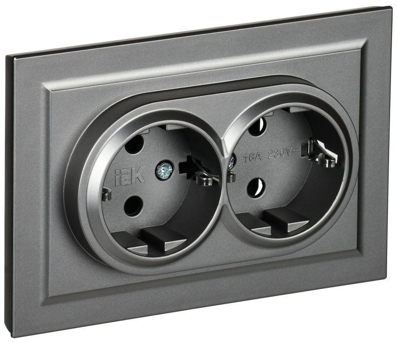 Розетка 2-м СП BRITE РС12-3-БрС 16А в сборе с заземл. без защ. шторок сталь IEK BR-R21-16-K46-F IEK