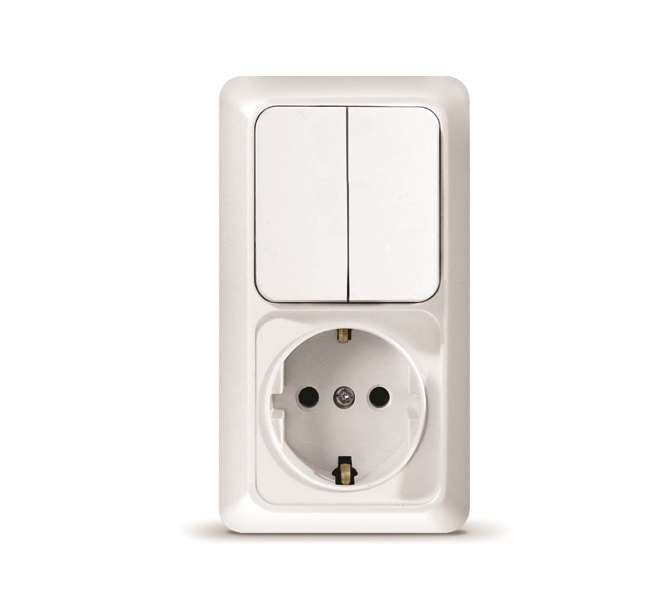 Блок ОП Олимп 2-кл. вык.+ роз. с заземл. верт. бел. UNIVersal О0040 Universal