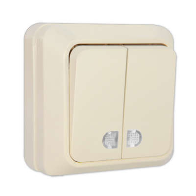 Выключатель 2-кл. ОП Олимп 10А IP20 с подсветкой сл. кость UNIVersal Б-О0123 Universal