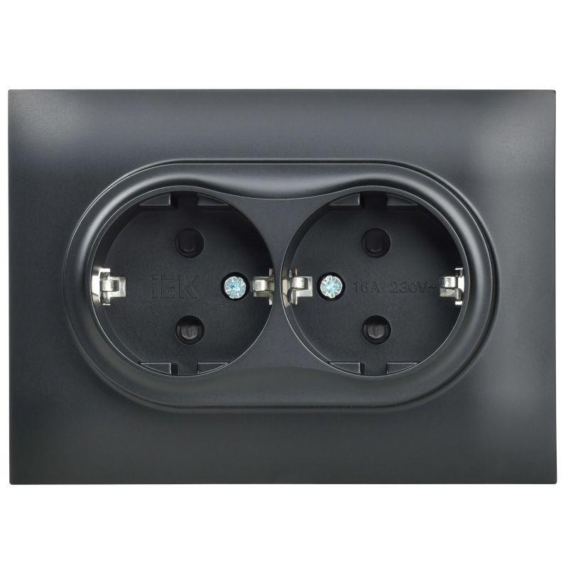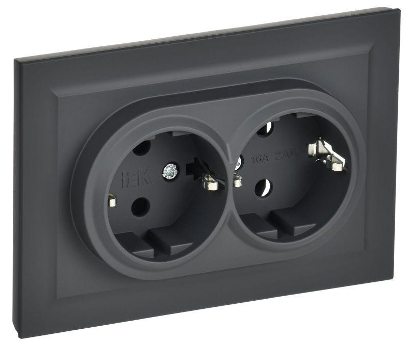 Розетка 2-м СП BRITE РС12-3-БрГ 16А в сборе с заземл. без защ. шторок графит IEK BR-R21-16-K53-F IEK
