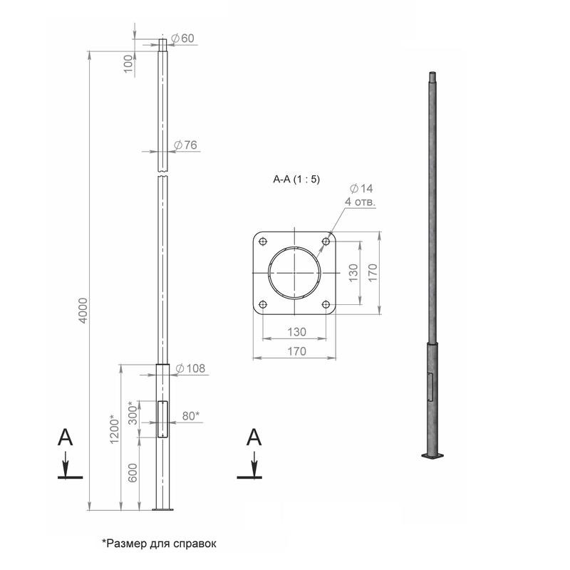 Опора ОП1ф-4.0-108/76/т60-(К170-130-4х14)-по 9005 муар Пересвет В00007136 Пересвет