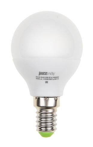 Лампа светодиодная PLED-ECO 5Вт G45 шар матовая 3000К тепл. бел. E27 400лм 230В 50Гц JazzWay 1036957A JazzWay