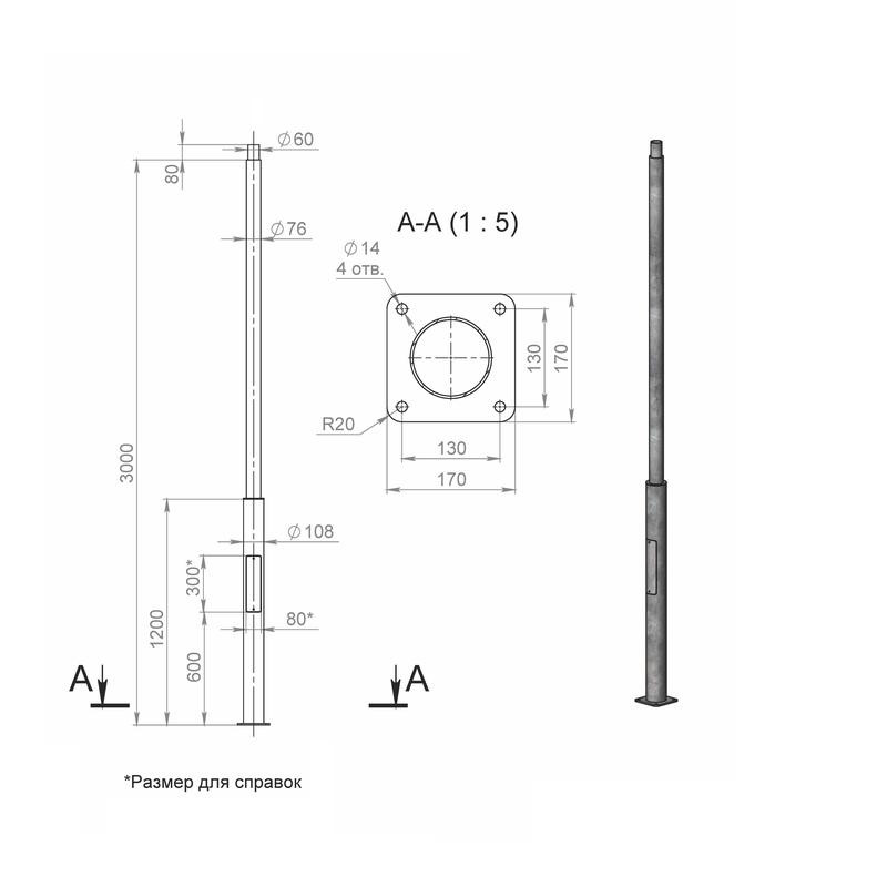 Опора ОП1ф-3.0-108/76/т60-(К170-130-4х14)-по 9005 муар Пересвет В00007134 Пересвет