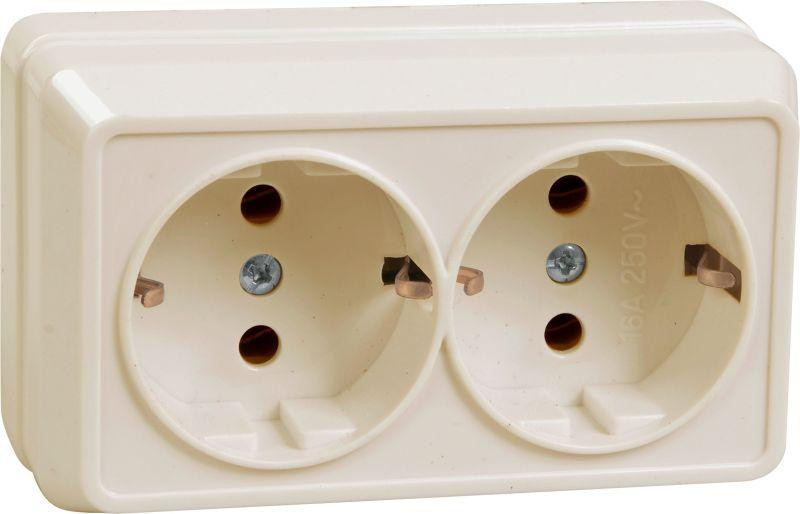 Розетка 2-м ОП Октава РС22-3-ОКм 16А IP20 с заземл. крем. IEK ERO21-K33-16-DC IEK