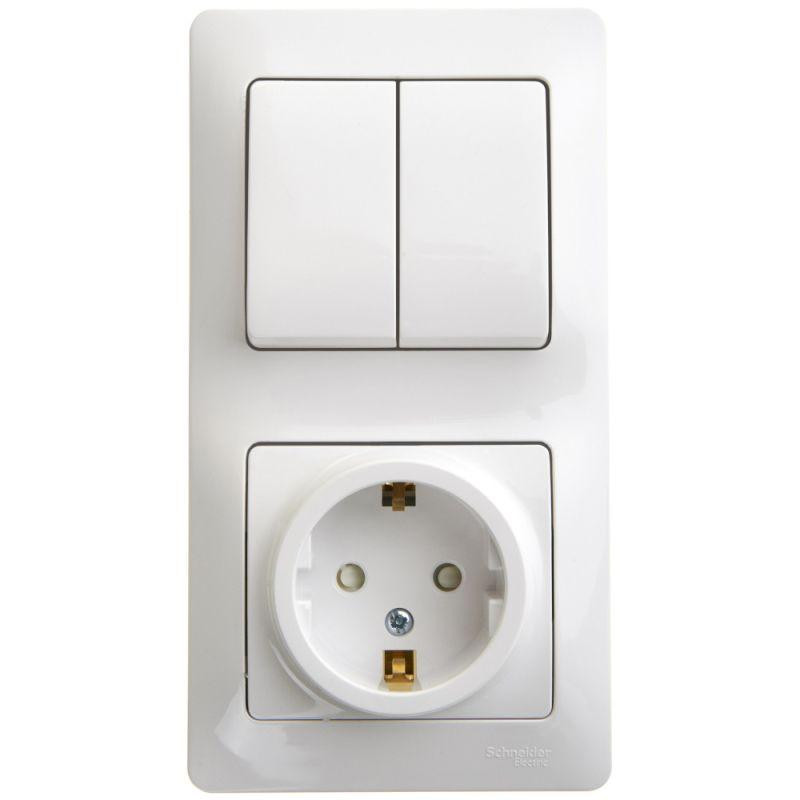 Блок комбинированный Glossa (розетка защ. шторки с заземл.+ 2-кл. выкл.) бел. SE GSL000174
