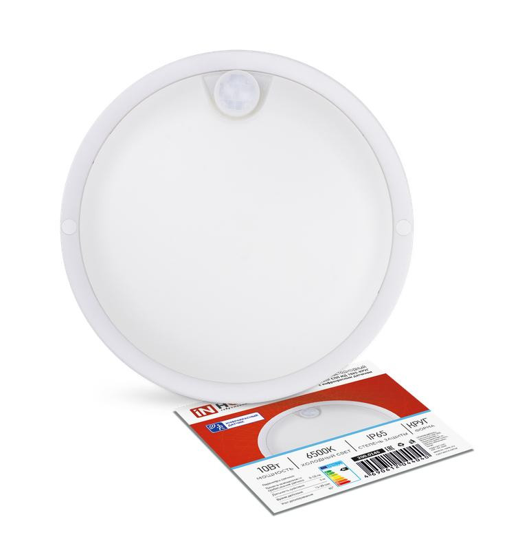 Светильник светодиодный СПП ИД-1065-КРУГ 10Вт 6500К IP65 900лм 140мм герметичный с инфракрасным датчиком IN HOME 4690612044040 IN HOME