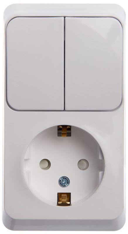 Блок ОП Этюд (1-м розетка с заземл. защ. шторки + 2-кл. выкл.) бел. SE BPA16-202B