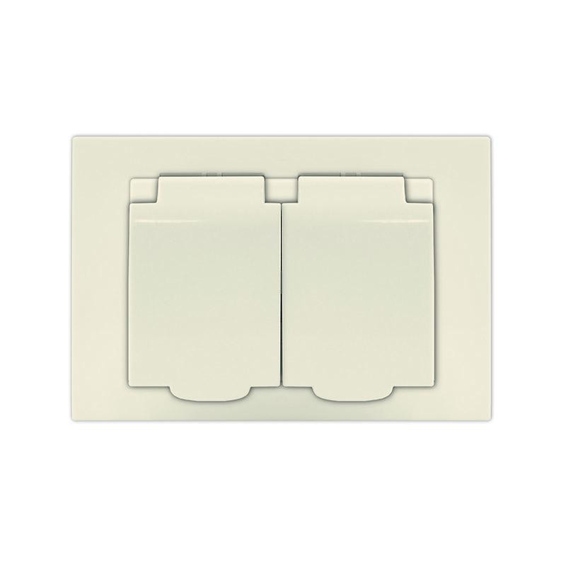 Розетка 2-м СП Афина 16А IP20 с заземл. c крышкой в сборе сл. кость (ivory) Universal A0031-I Universal