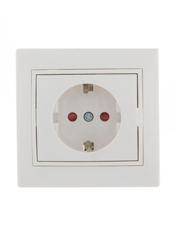 Розетка 1-м СП Mira 16А IP20 с заземл. защ. шторки с бел. вставкой керамика бел. LEZARD 701-0202-124 LEZARD