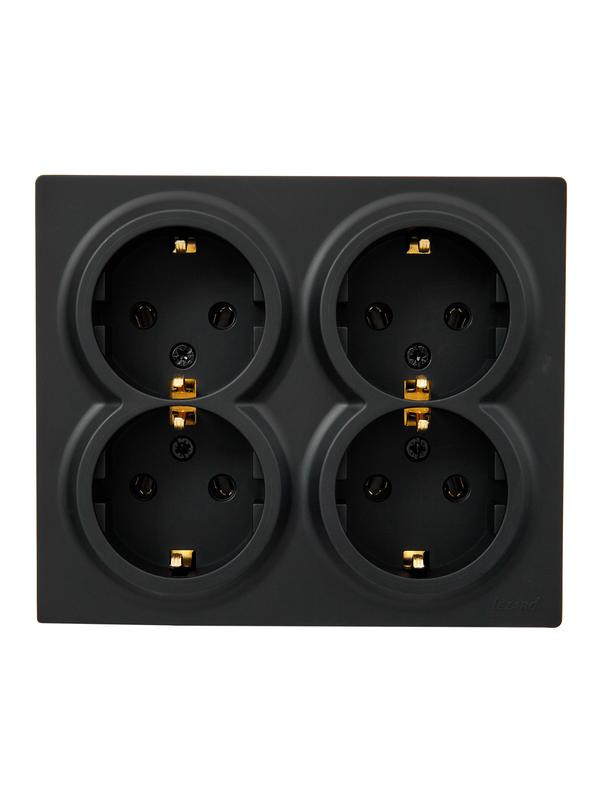 Розетка 4-мест. с заземл. LETO закрытый корпус ПБТ черн. бархат LEZARD 752-4200-127BDP LEZARD
