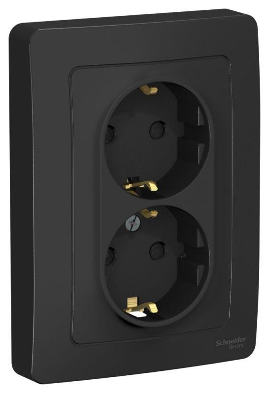 Розетка 2-м СП Blanca 16А IP20 250В с заземл. защ. шторки антрацит SE BLNRS001126