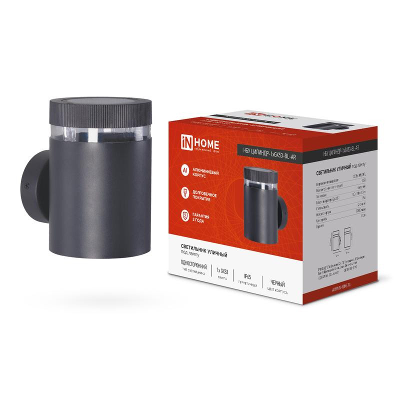 Светильник НБУ ЦИЛИНДР-1хGX53-BL-AR IP65 уличный настен. односторон. под лампу 1хGX53 алюм. черн. IN HOME 4690612044668 IN HOME