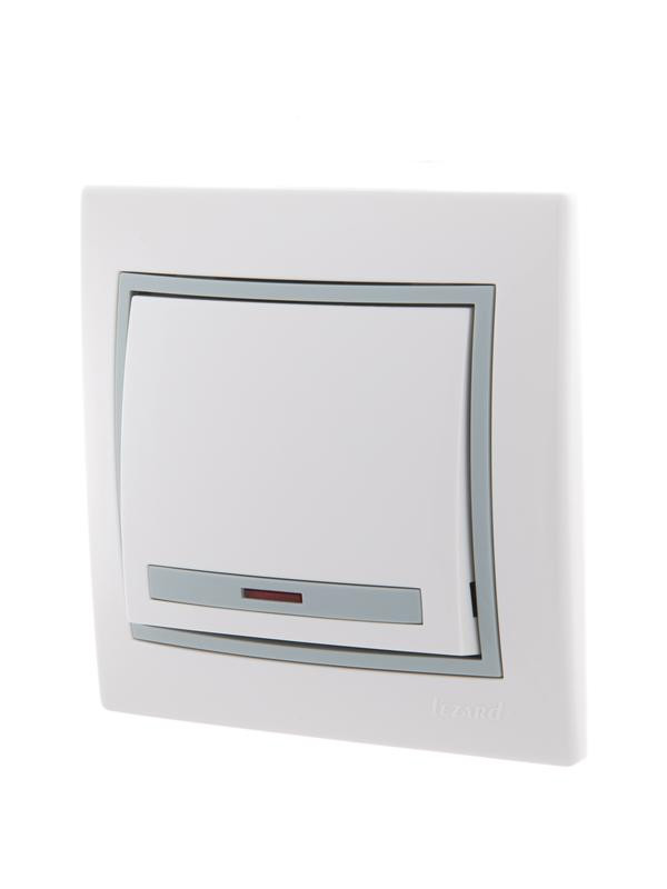 Выключатель 1-кл. СП Mira 10А IP20 с подсветкой с сер. вставкой бел. LEZARD 701-0215-111 LEZARD