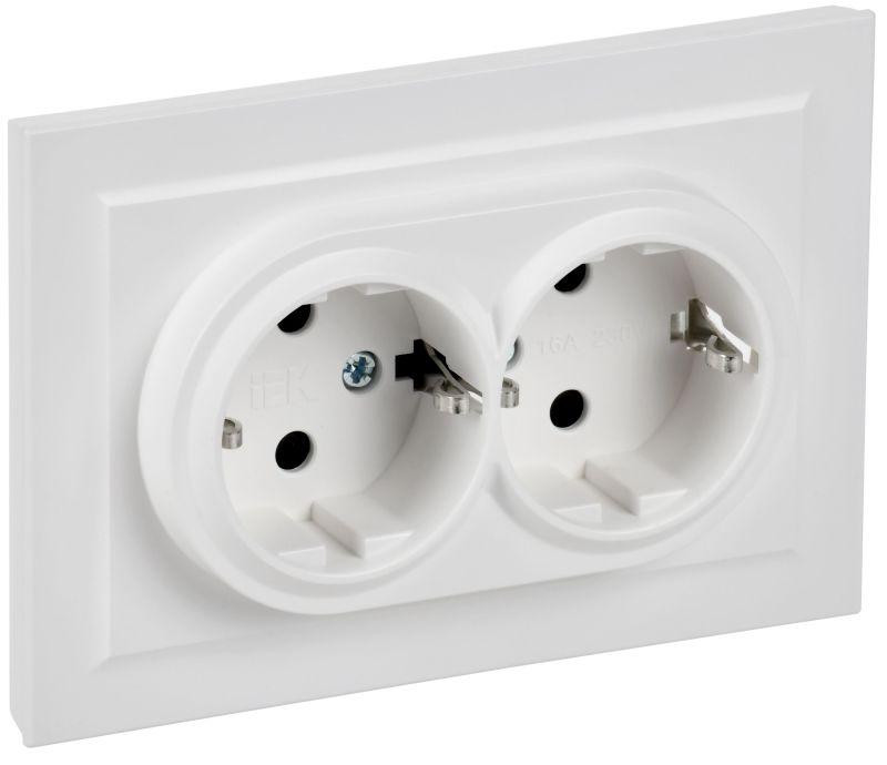 Розетка 2-м СП BRITE РСш12-3-БрАБ 16А в сборе с заземл. защ. шторки арктич. бел. IEK BR-R24-16-K91-F IEK