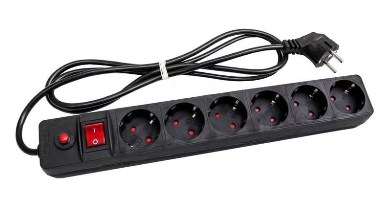 Удлинитель с сетевым фильтром 6х1.8м с заземл. 10А IP20 ПВС 3х0.75 защ. шторки черн. UNIVersal 967U-4001 Universal