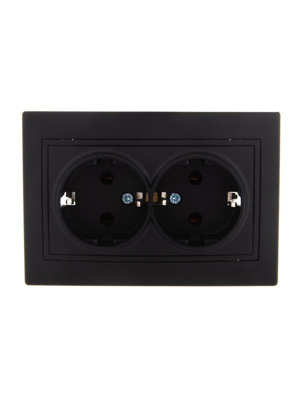 Розетка 2-м СП Mira 16А IP20 с заземл. керамика черн. бархат LEZARD 701-4242-127 LEZARD