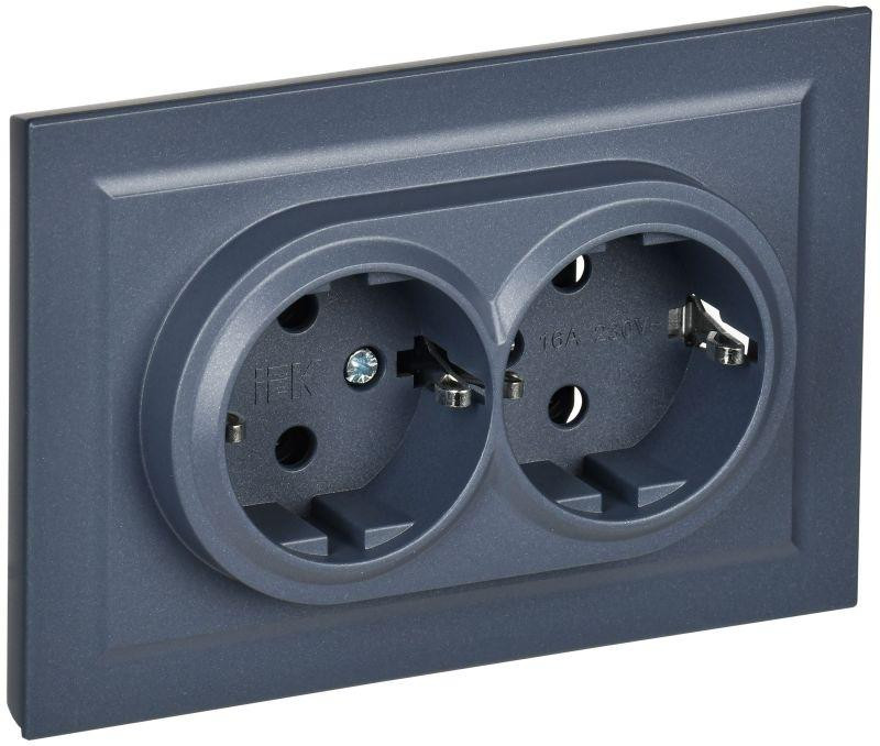 Розетка 2-м СП BRITE РС12-3-БрМ 16А в сборе с заземл. без защ. шторок маренго IEK BR-R21-16-K35-F IEK