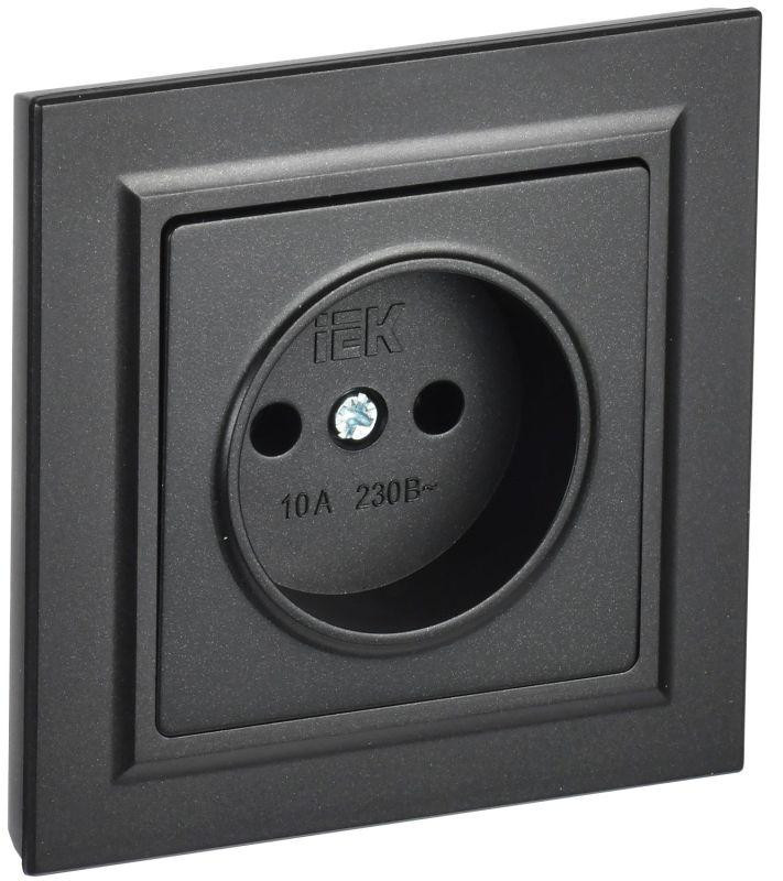 Розетка СП BRITE РСР10-1-0-БрЧ 10А в сборе без заземл. без защ. шторок черн. IEK BR-R10-10-K02-F IEK