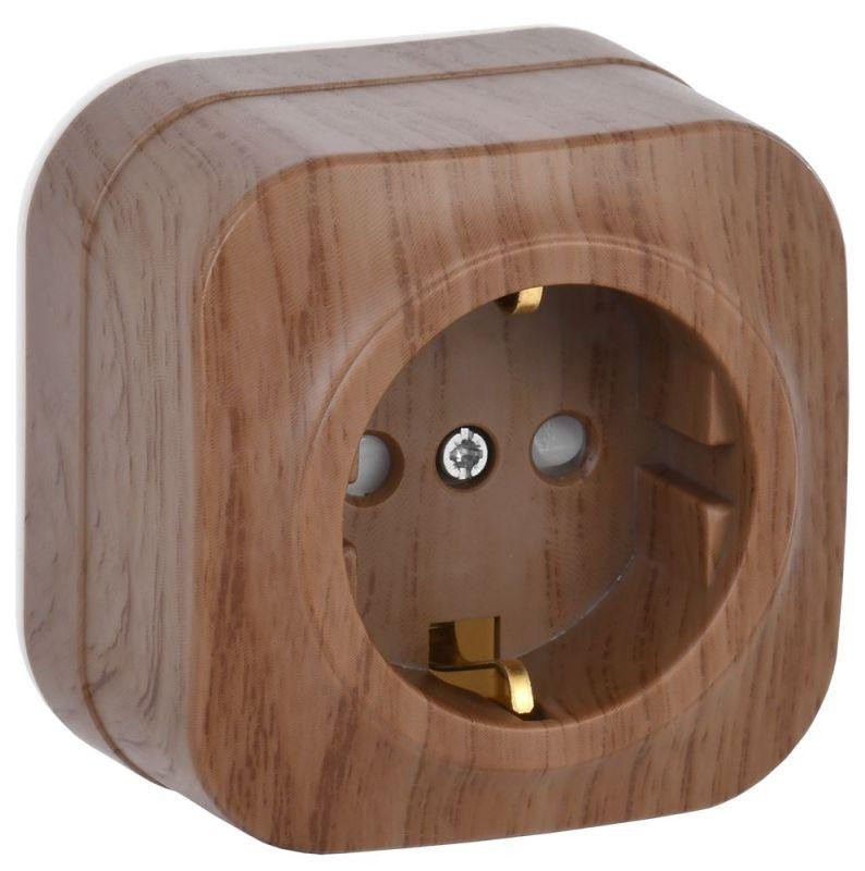 Розетка 1-м ОП GLORY РСш20-3-ХД 16А с заземл. защ. шторки дуб IEK ERH14-K24-16 IEK