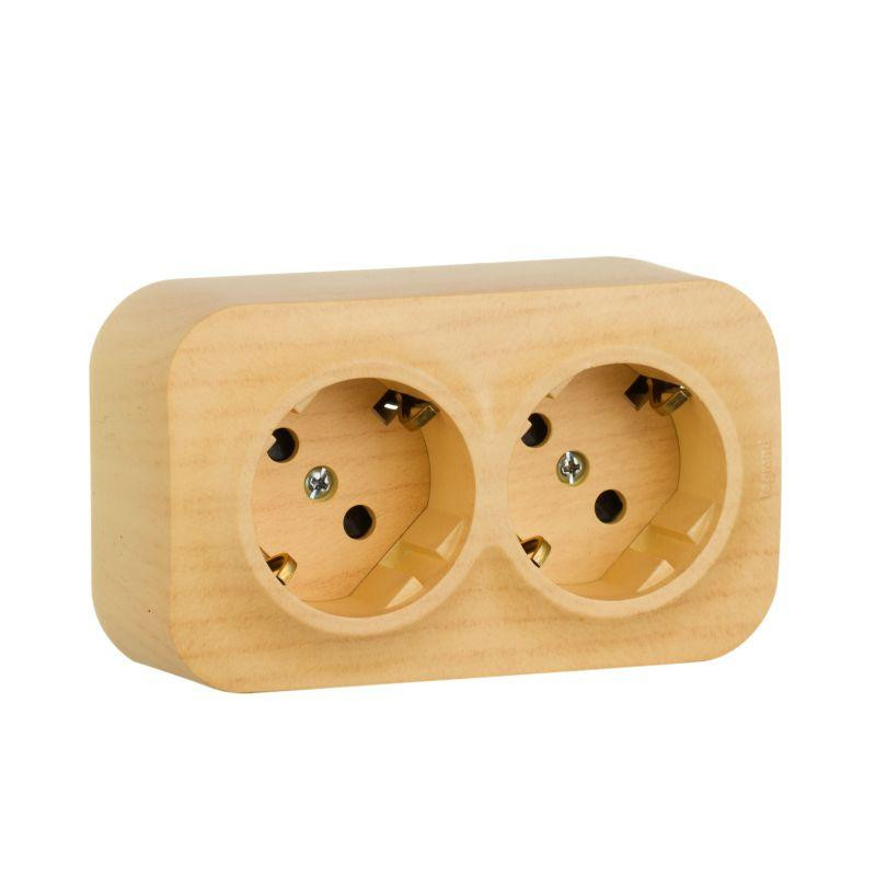Розетка 2-м ОП Quteo 16А IP20 250В 2х2P без заземл. без защ. шторок дерево Leg 782281 Legrand