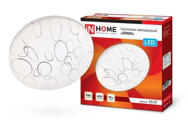 Светильник светодиодный DECO ОРИОН 24Вт 4000К 2160лм 230В 330х55мм IN HOME 4690612021973 IN HOME