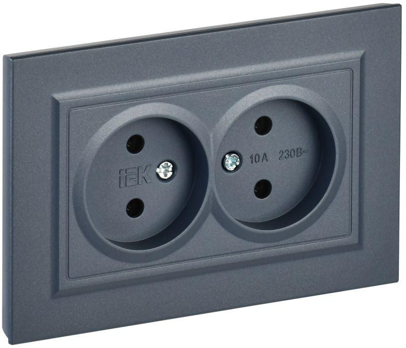 Розетка 2-м СП BRITE РС12-2-БрМ 10А в сборе без заземл. без защ. шторок маренго IEK BR-R20-10-K35-F IEK