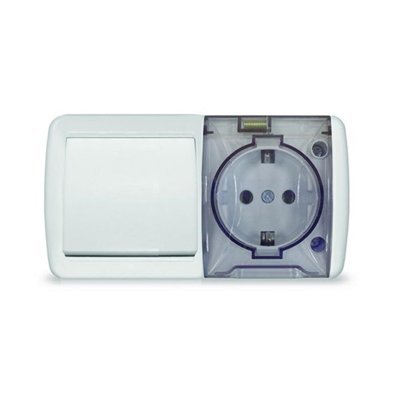 Блок ОП Клио 1-кл. выкл. 10А + розетка 1-м 16А 250В с заземл. с прозр. крышкой бел. Universal К2237 Universal