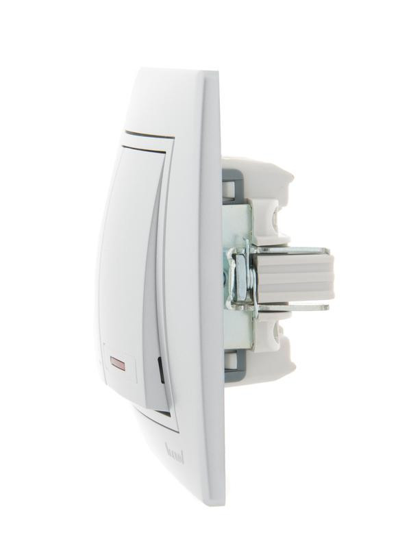 Выключатель 2-кл. СП Mira 10А IP20 с подсветкой со вставкой сер. метал. LEZARD 701-1010-112 LEZARD