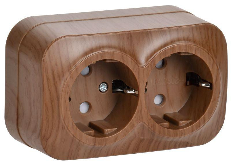 Розетка 2-м ОП GLORY РСш22-3-ХД 16А с заземл. защ. шторки дуб IEK ERH24-K24-16 IEK