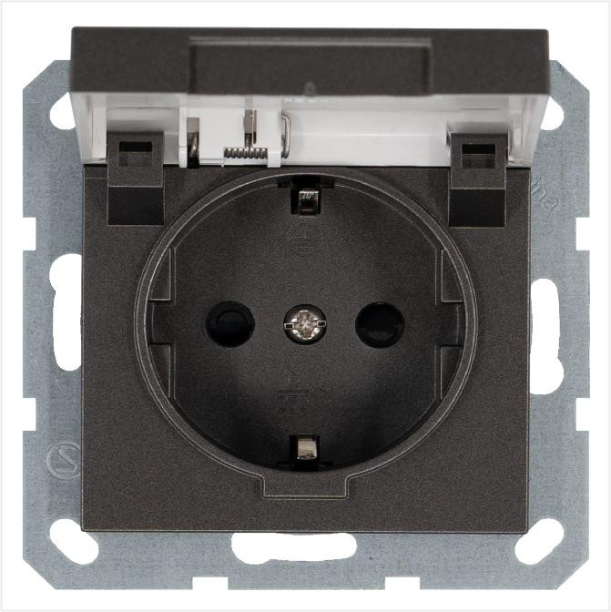 Розетка 1-м Shuko 16А IP20 с заземл. защ. шторки с крышкой механизм мокко Jasmart G5505Z