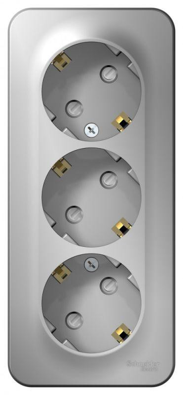 Розетка 3-м ОП Blanca 16А IP20 250В с заземл. защ. шторки с изолир. пластиной алюм. SE BLNRA011313