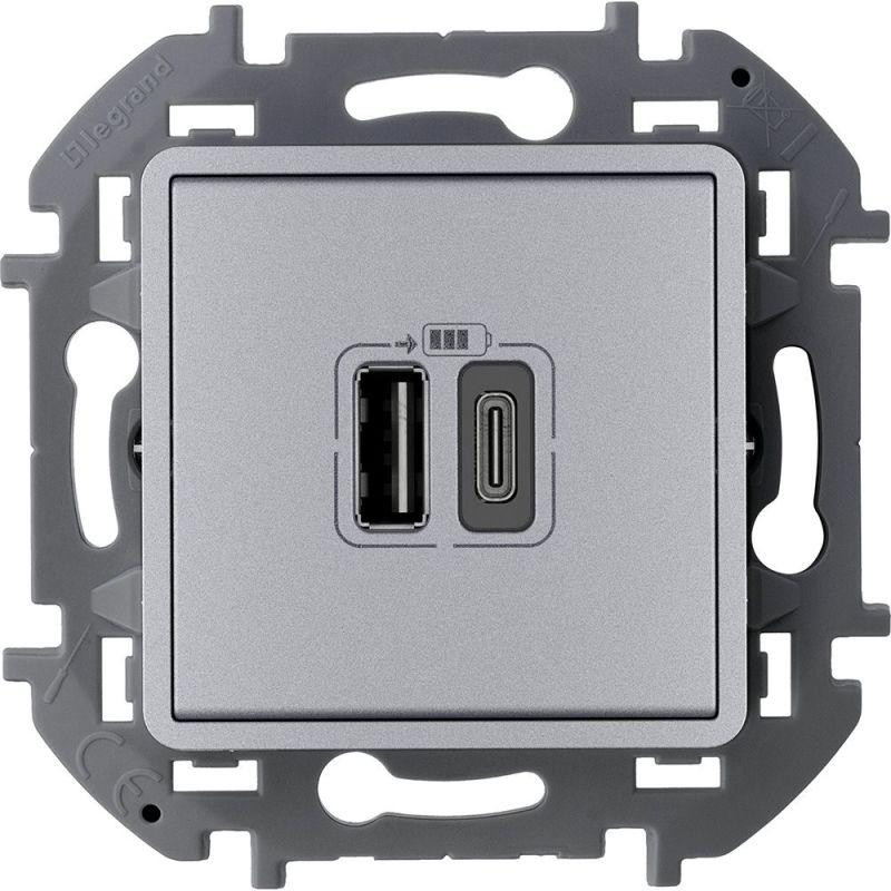 Устройство зарядное Inspiria с 2-мя USB разьемами A и C 240В/5В 3000мА алюм. IEK 673762