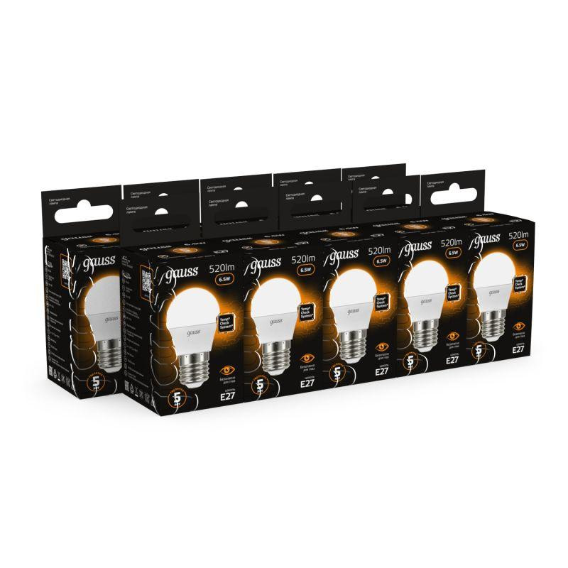 Лампа светодиодная Black 6.5Вт P45 шар 3000К тепл. бел. E27 520лм GAUSS 105102107