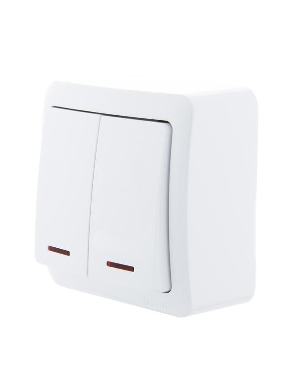 Выключатель 2-кл. 1п ОП Viola 10А IP20 с подсветкой бел. LEZARD 751-0200-112 LEZARD