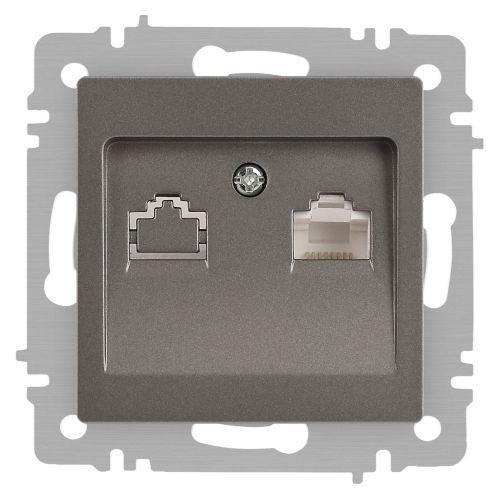 Розетка компьютерная 1-м СП Accent 6-303-09 RJ45 IP20 титан Intro Б0063642