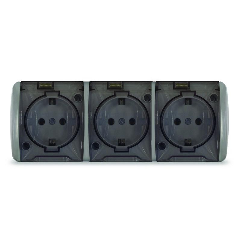 Розетка 3-м ОП Клио 16А IP54 с заземл. с прозр. крышкой сер. Universal К2235-Gr Universal