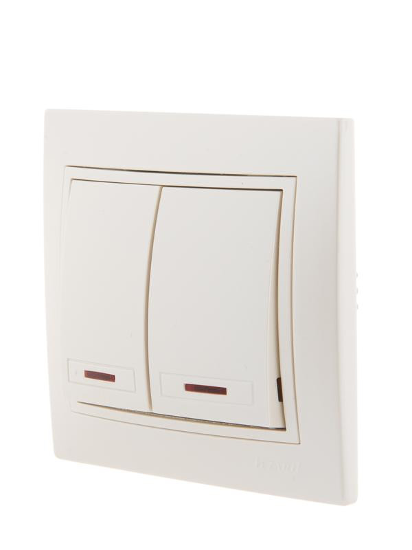 Выключатель 2-кл. СП Mira 10А IP20 с подсветкой со вставкой жемчуж./бел. перламутр. LEZARD 701-3030-112 LEZARD