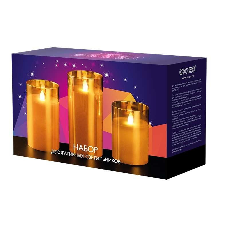 Свеча декоративная CL7-SET3-gd с пультом 2хAA для каждой свечи (не в компл.) зол. (уп.3шт) ФАZА 5018822 ФАZА