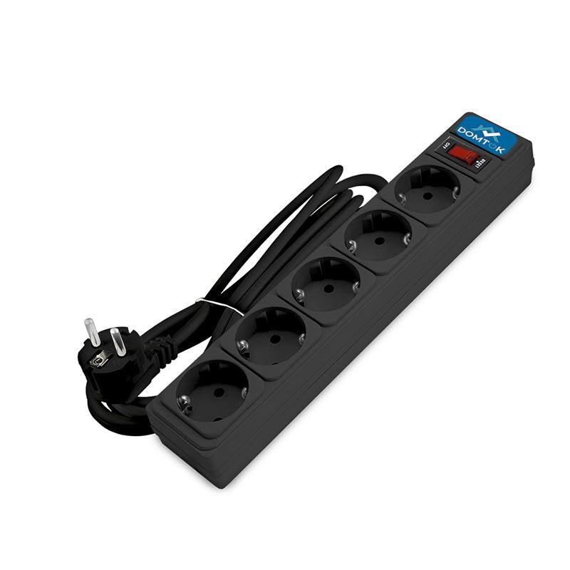 Удлинитель с сетевым фильтром 5х5м с заземл 10А IP20 2.2кВт ПВС 3х1 с выкл. черн. DOMTOK 2539