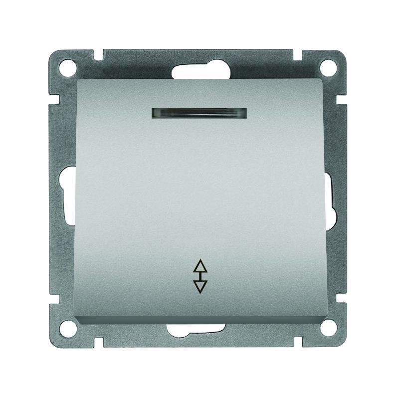 Переключатель проходной 1-кл. СП Афина 10А IP20 с подсветкой механизм серебр. Universal A0125-S Universal