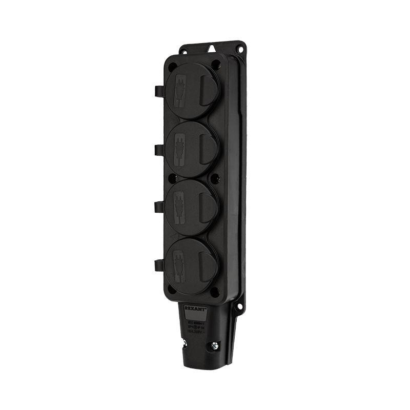 Розетка штепсельная четырехместная влагозащ. с/з 16А IP54 каучук Rexant 111-114 Rexant